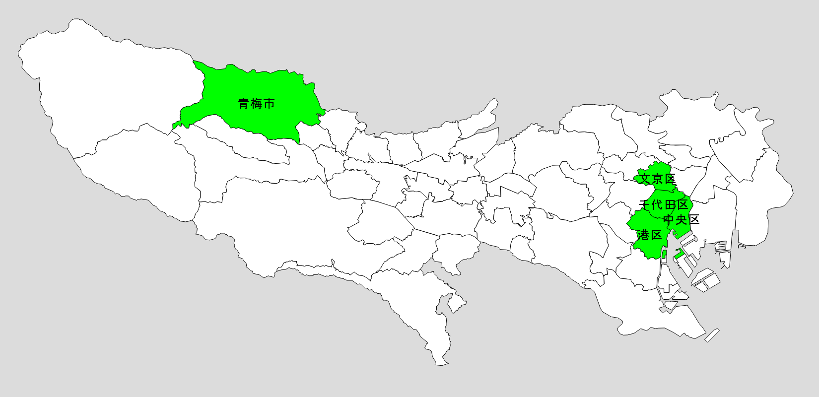 クリック:地図上でクリックした市町村を塗る。もう一回クリックすると消える。