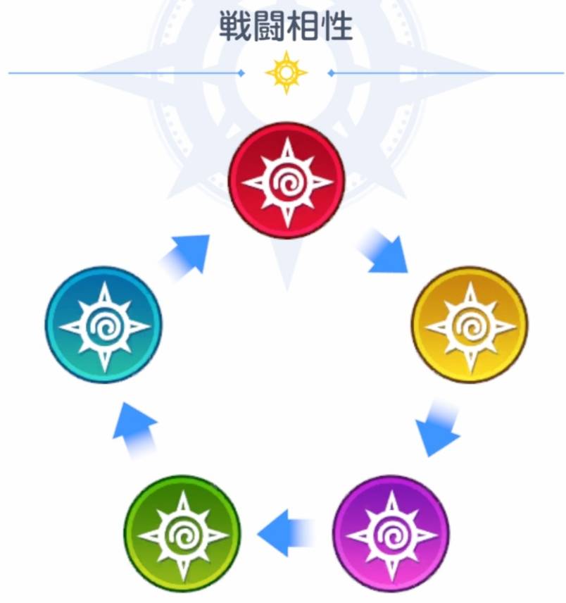 矢印が向いている属性に対して優勢となります。